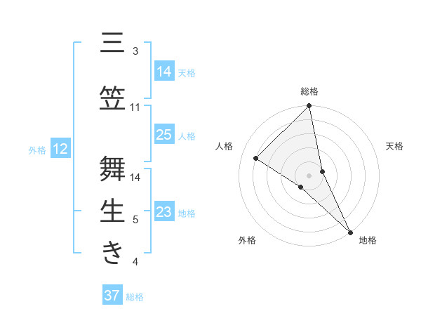 三笠 舞生きさんの総格は37画の5点!