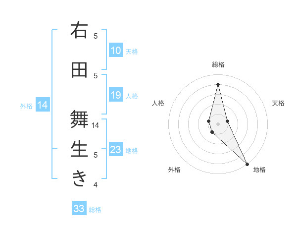右田 舞生きさんの地格は23画の5点!