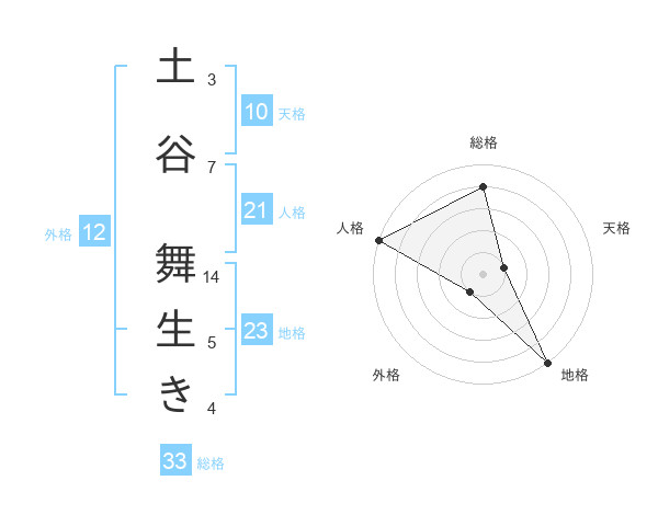 土谷 舞生きさんを姓名の画数から五運を鑑定