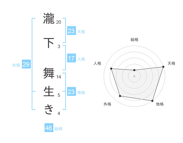 瀧下 舞生きさんを姓名の画数から五運を鑑定