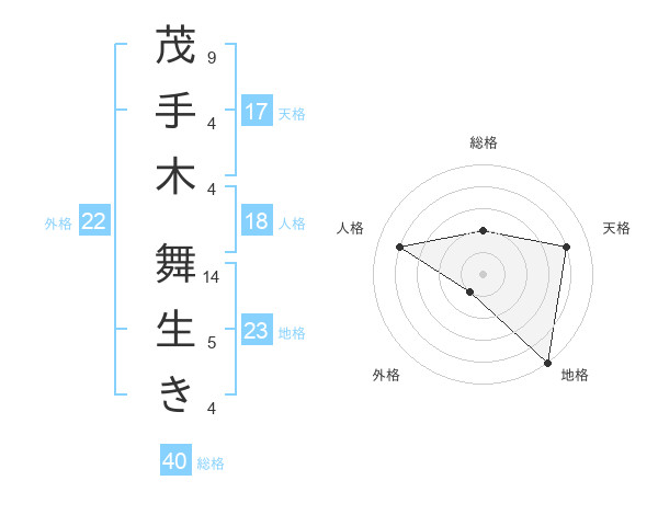 茂手木 舞生きさんを姓名の画数から五運を鑑定