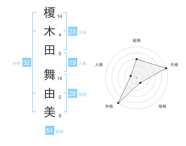 榎木田 舞由美さんの総格は51画の3点