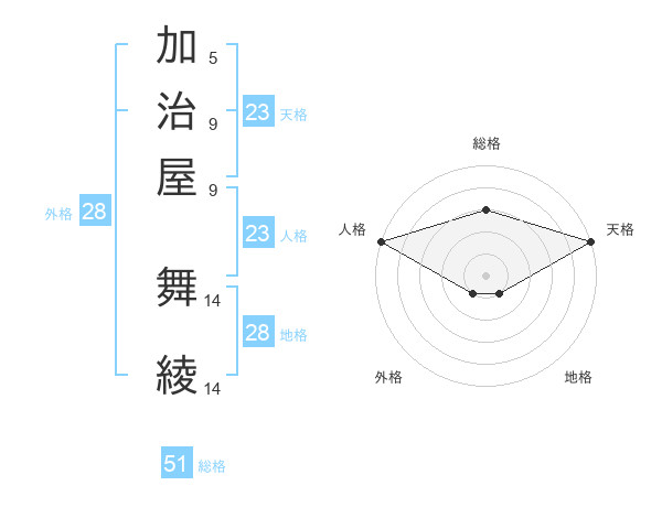 加治屋 舞綾さんを姓名の画数から五運を鑑定