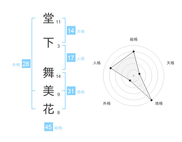 堂下 舞美花さんの総格は45画の4点!