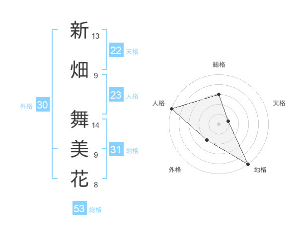 新畑 舞美花さんを姓名の画数から五運を鑑定
