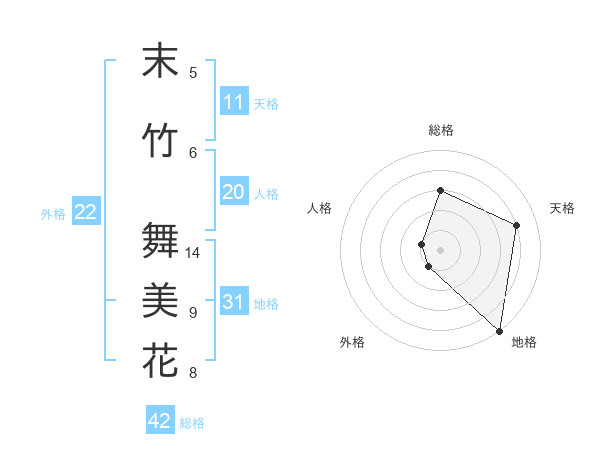 末竹 舞美花さんの総格は42画の3点!