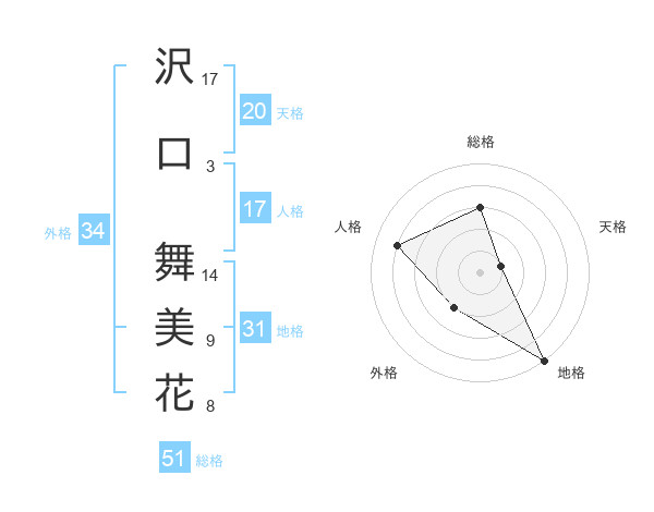 沢口 舞美花さんを姓名の画数から五運を鑑定