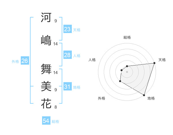 河嶋 舞美花さんを姓名の画数から五運を鑑定