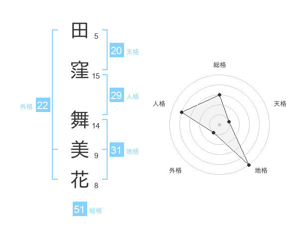 田窪 舞美花さんを姓名の画数から五運を鑑定