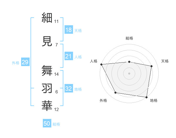 細見 舞羽華さんの総格は50画の2点