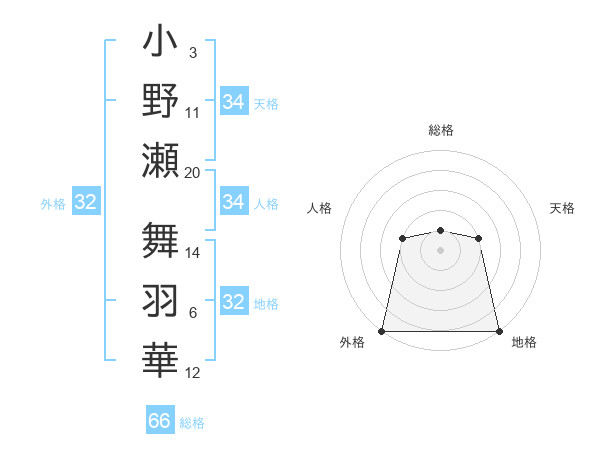 小野瀬 舞羽華さんを姓名の画数から五運を鑑定