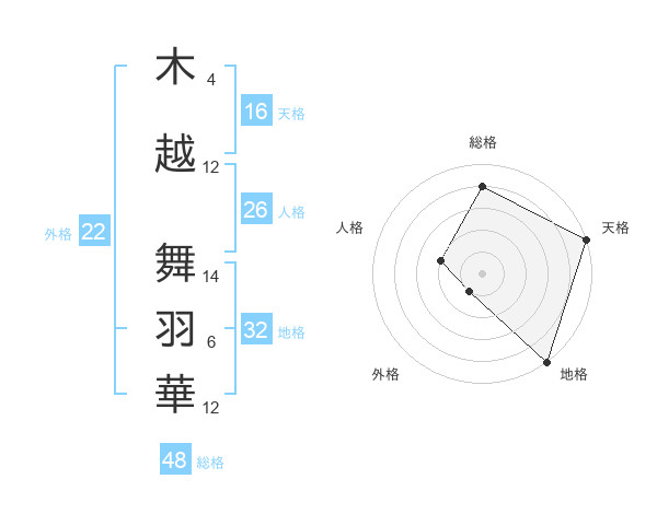 木越 舞羽華さんを姓名の画数から五運を鑑定