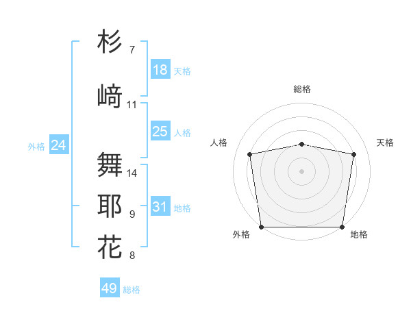 杉﨑 舞耶花さんの総格は49画の2点!