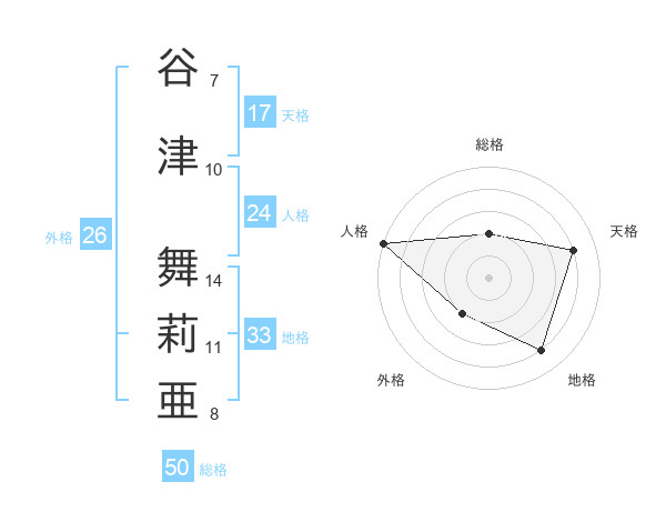 谷津 舞莉亜さんを姓名の画数から五運を鑑定