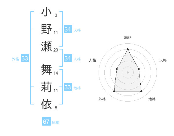 小野瀬 舞莉依さんを姓名の画数から五運を鑑定