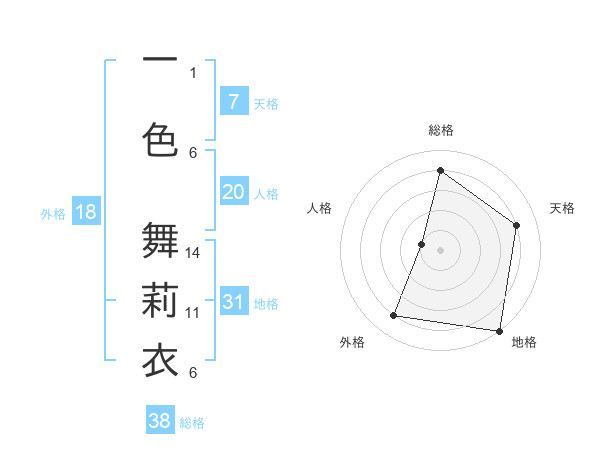 一色 舞莉衣さんの総格は38画の4点!
