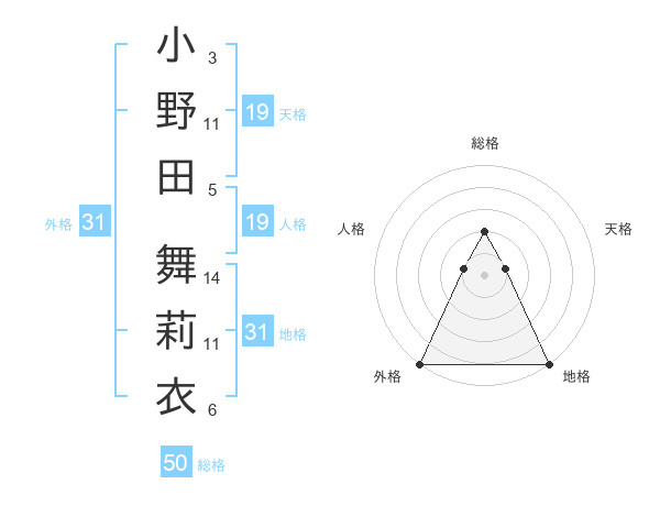 小野田 舞莉衣さんの外格は31画の5点!