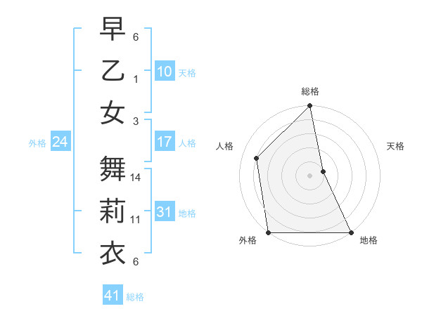 早乙女 舞莉衣さんを姓名の画数から五運を鑑定