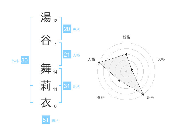 湯谷 舞莉衣さんを姓名の画数から五運を鑑定