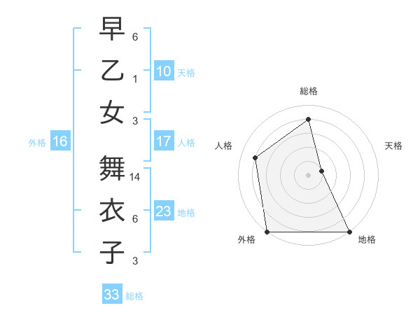 早乙女 舞衣子さんを姓名の画数から五運を鑑定