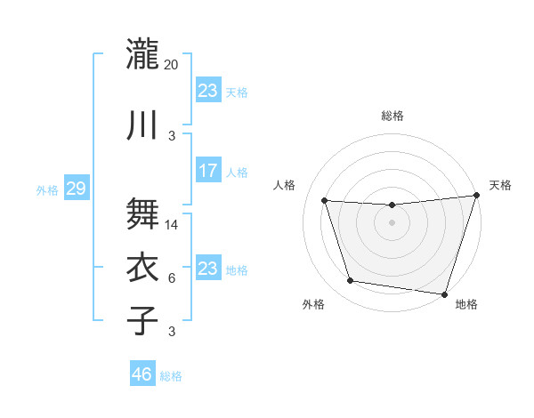 瀧川 舞衣子さんを姓名の画数から五運を鑑定