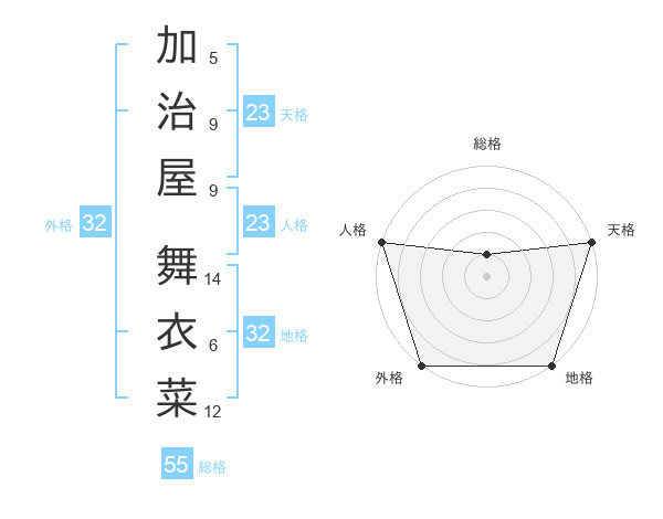 加治屋 舞衣菜さんの天格は23画の5点