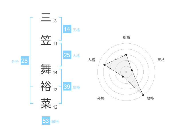 三笠 舞裕菜さんを姓名の画数から五運を鑑定