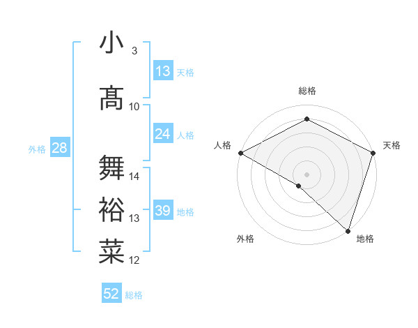 小髙 舞裕菜さんを姓名の画数から五運を鑑定