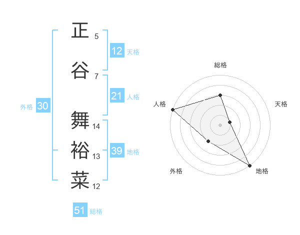 正谷 舞裕菜さんを姓名の画数から五運を鑑定