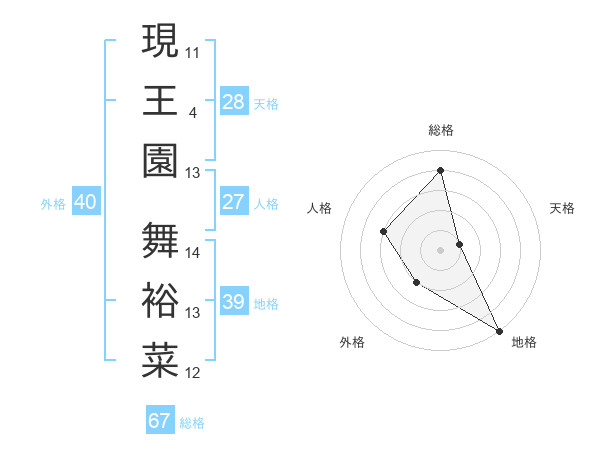 現王園 舞裕菜さんを姓名の画数から五運を鑑定