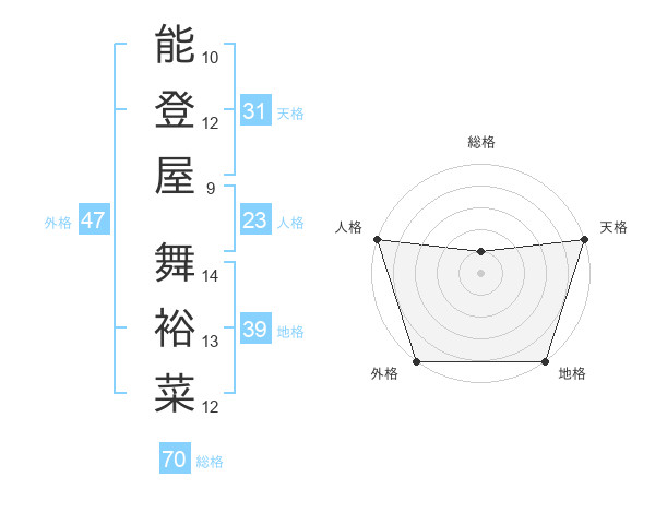 能登屋 舞裕菜さんを姓名の画数から五運を鑑定
