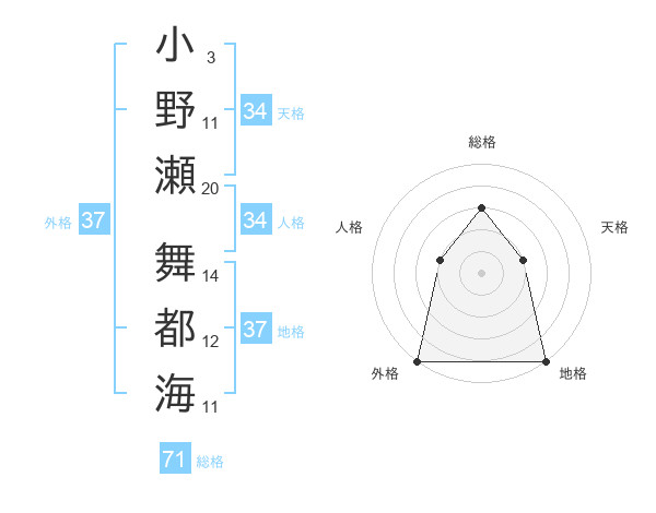 小野瀬 舞都海さんを姓名の画数から五運を鑑定