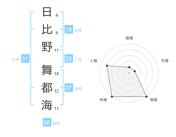 日比野 舞都海さんを姓名の画数から五運を鑑定