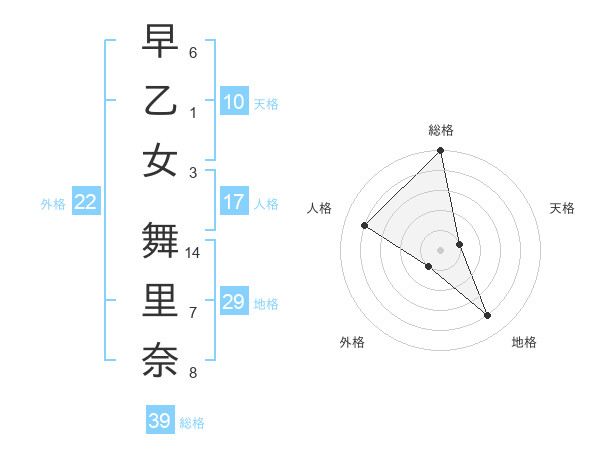 早乙女 舞里奈さんを姓名の画数から五運を鑑定