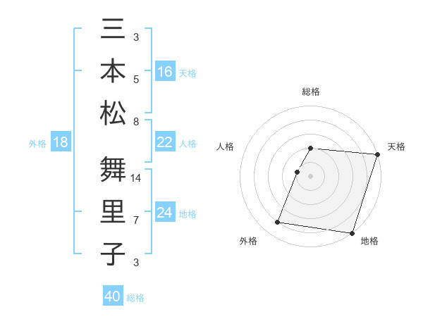 三本松 舞里子さんを姓名の画数から五運を鑑定