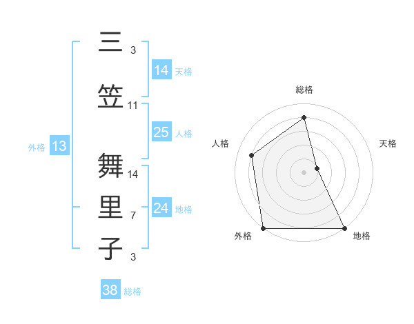 三笠 舞里子さんを姓名の画数から五運を鑑定