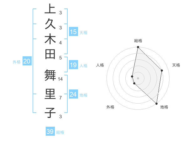 上久木田 舞里子さんを姓名の画数から五運を鑑定