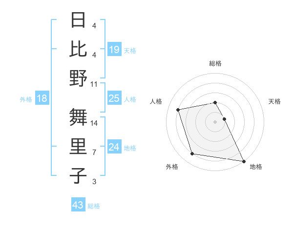 日比野 舞里子さんを姓名の画数から五運を鑑定
