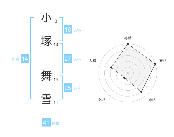 小塚 舞雪さんを姓名の画数から五運を鑑定
