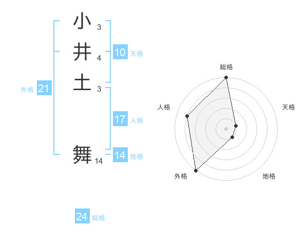 小井土 舞さんの総格は24画の5点!