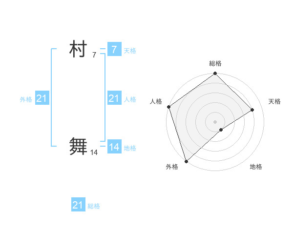 村 舞さんの総格は21画の5点!