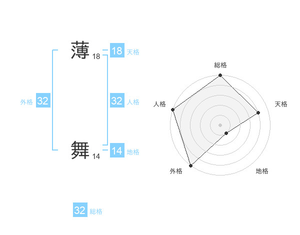 薄 舞さんの総格は32画の5点!