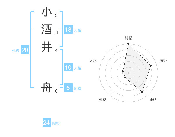 小酒井 舟さんの総格は24画の5点!
