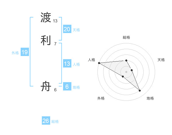 渡利 舟さんの総格は26画の2点!