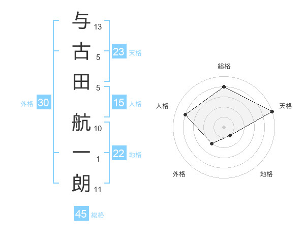 与古田 航一朗さんを姓名の画数から五運を鑑定