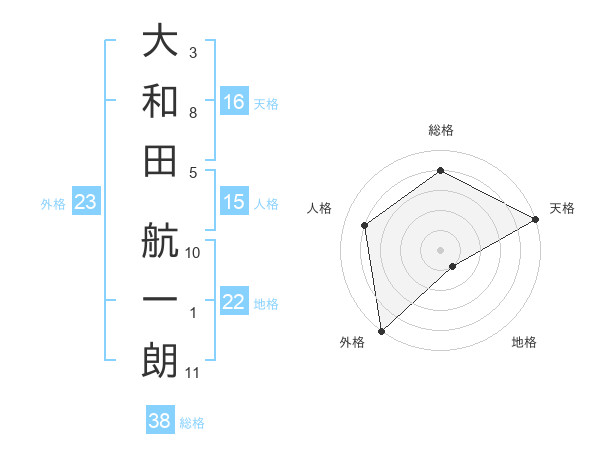 大和田 航一朗さんを姓名の画数から五運を鑑定