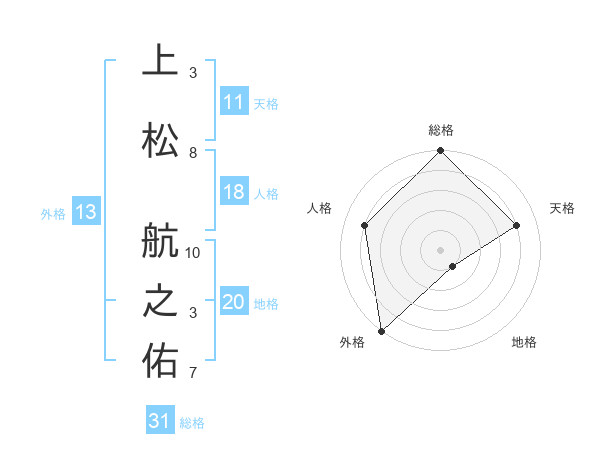 上松 航之佑さんの総格は31画の5点!
