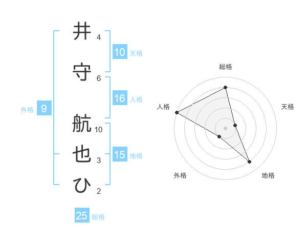 井守 航也ひさんの総格は25画の4点!