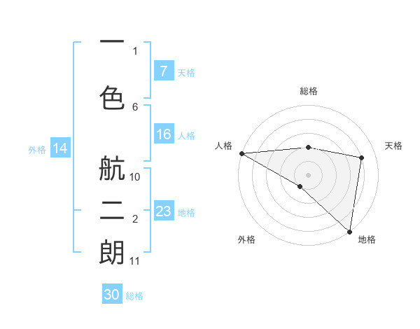 一色 航二朗さんを姓名の画数から五運を鑑定