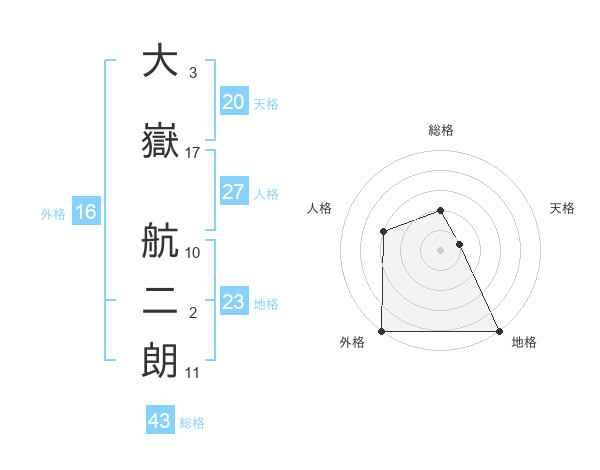 大嶽 航二朗さんを姓名の画数から五運を鑑定